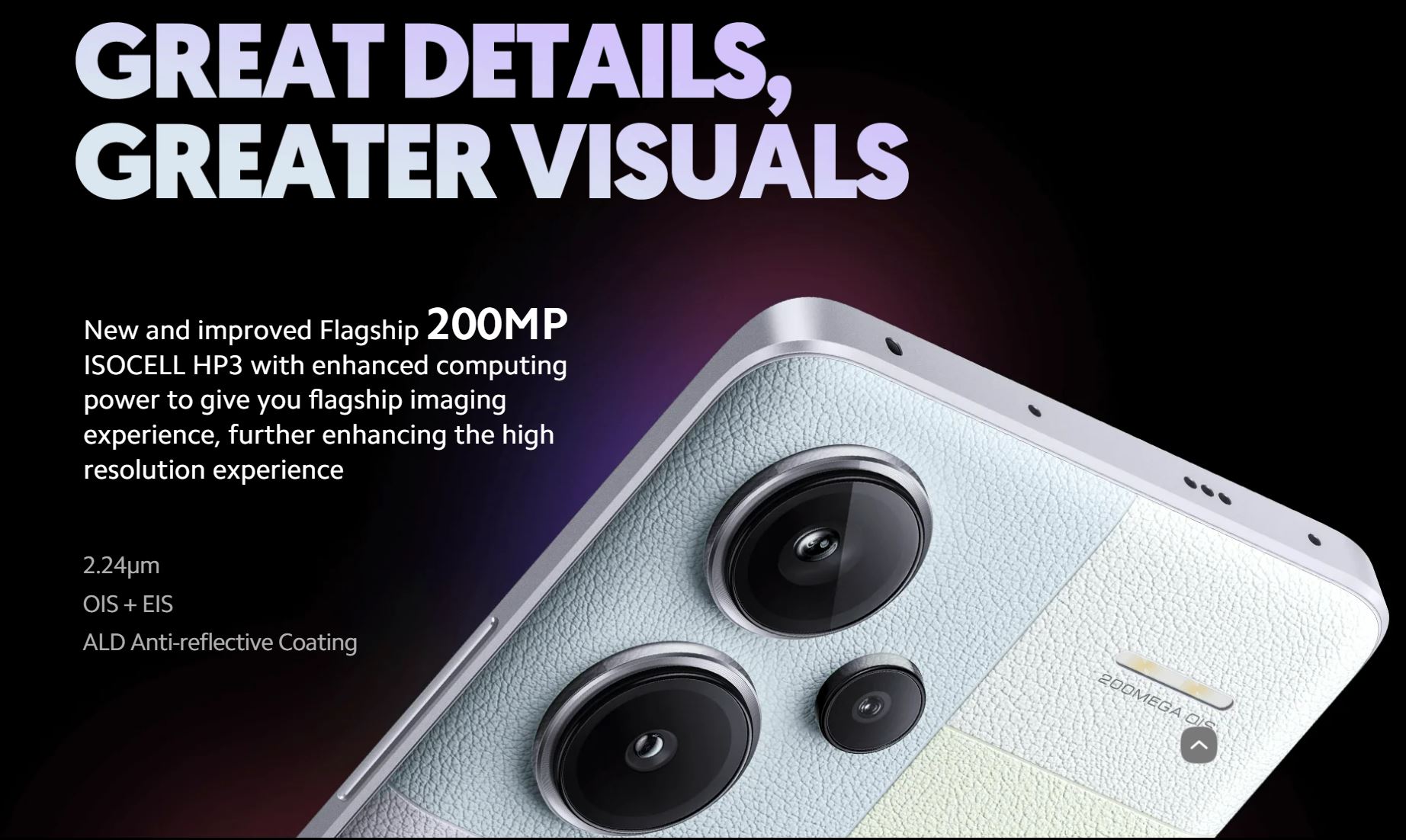 | Rear Camera | 200MP main camera OIS, f/1.65, 1/1.4” sensor size, 7P lens | 8MP ultra-wide cameraf/2.2 | 2MP macro cameraf/2.4 |
